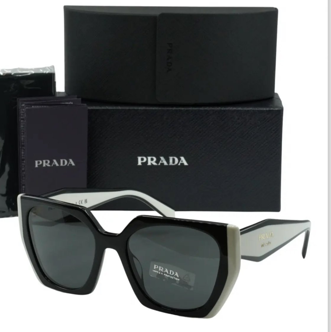 البوكس الاوريجنال +جرب يد محفور عليه اسم الماركه +منديل مكتوب عليه اسم الماركه ه النظاره الاكثر فخامهprada